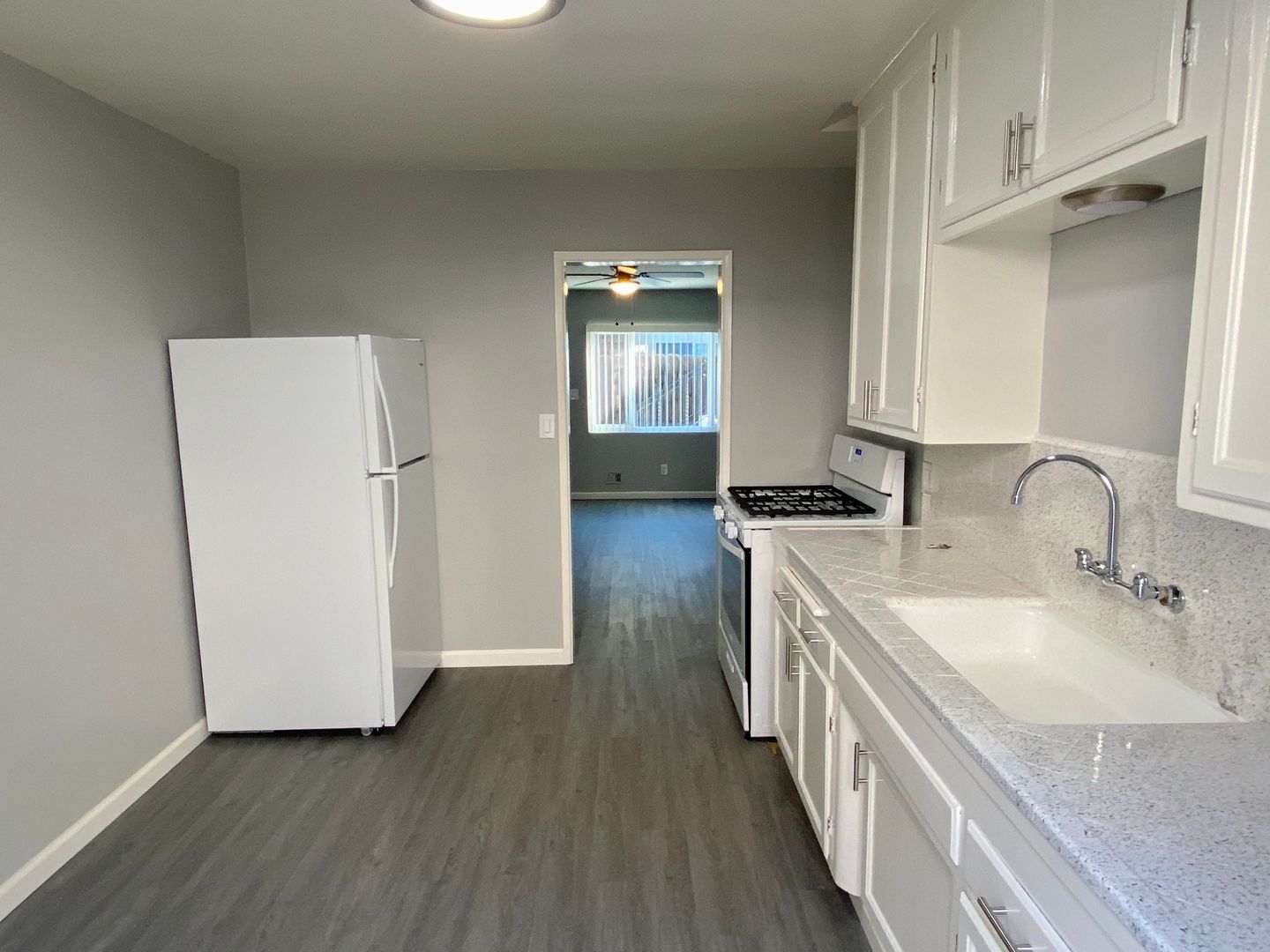 This property is located in Normal Heights right next to all the restaurants, craft breweries and boutiques in Normal Heights on Adams Avenue. This 2 bedroom apartment is a downstairs unit that has been upgraded with luxury vinyl planking and a full paint job in a beautiful light neutral gray. The kitchen is spacious enough for a dining room table, features a newer gas stove and refinished countertops. There are two additional closets for storage in the hallway. Both bedrooms have ceiling fans and ample closet space. Some of the amenities include luxury vinyl planking throughout the entire unit, ceiling fans, laundry on-site and one assigned off street parking space. There is also a shared back patio. Centrally located with only a few minutes drive to Highways 8, 805, and 94.