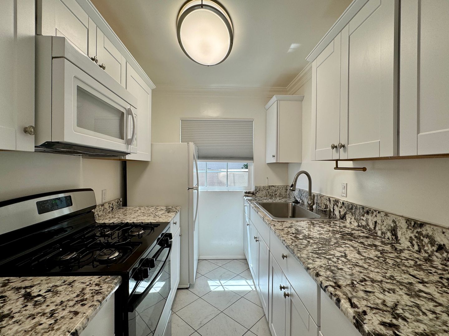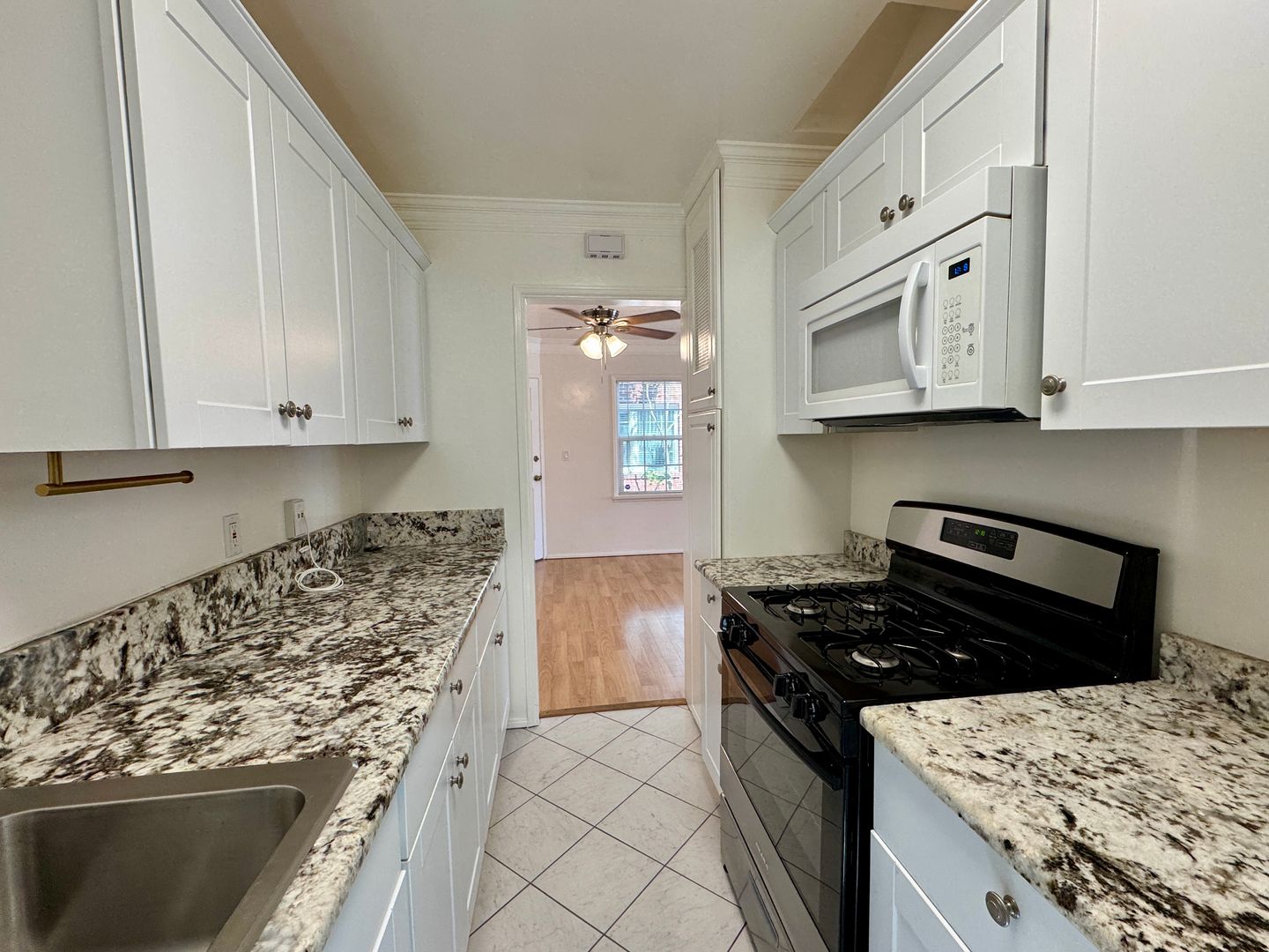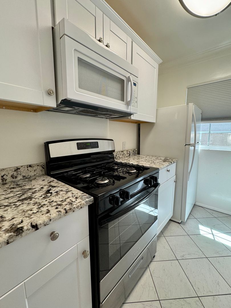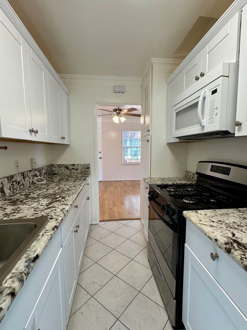Located on the first floor, this bright and inviting home features rich wood floors throughout and abundant natural light. The updated kitchen is equipped with granite countertops, a gas stove, and an above-range microwave—perfect for everyday living and entertaining.